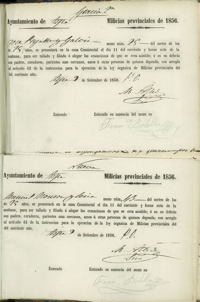Actas de Alistamiento, 1856.