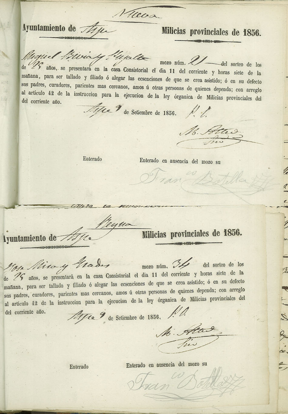 Actas de Alistamiento, 1856.
