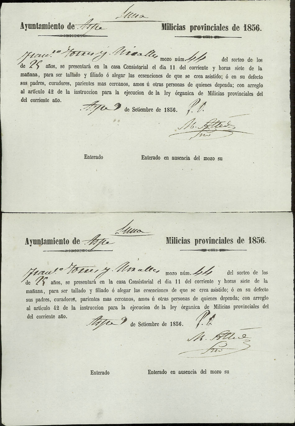 Actas de Alistamiento, 1856.