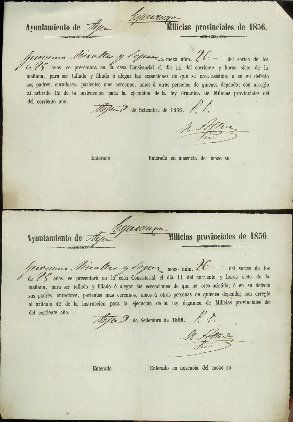 Actas de Alistamiento, 1856.