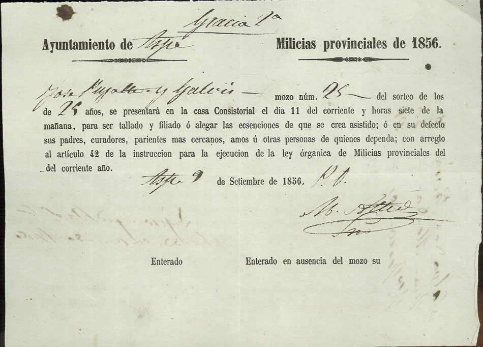 Actas de Alistamiento, 1856.