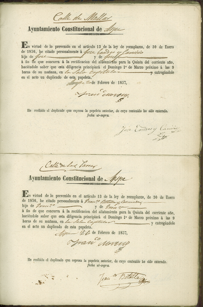 Actas de Alistamiento, 1857