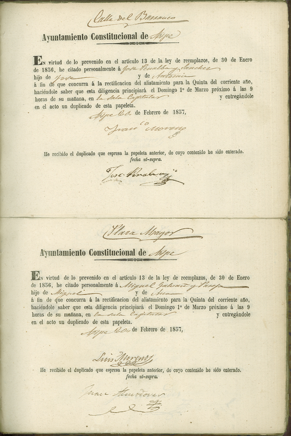 Actas de Alistamiento, 1857