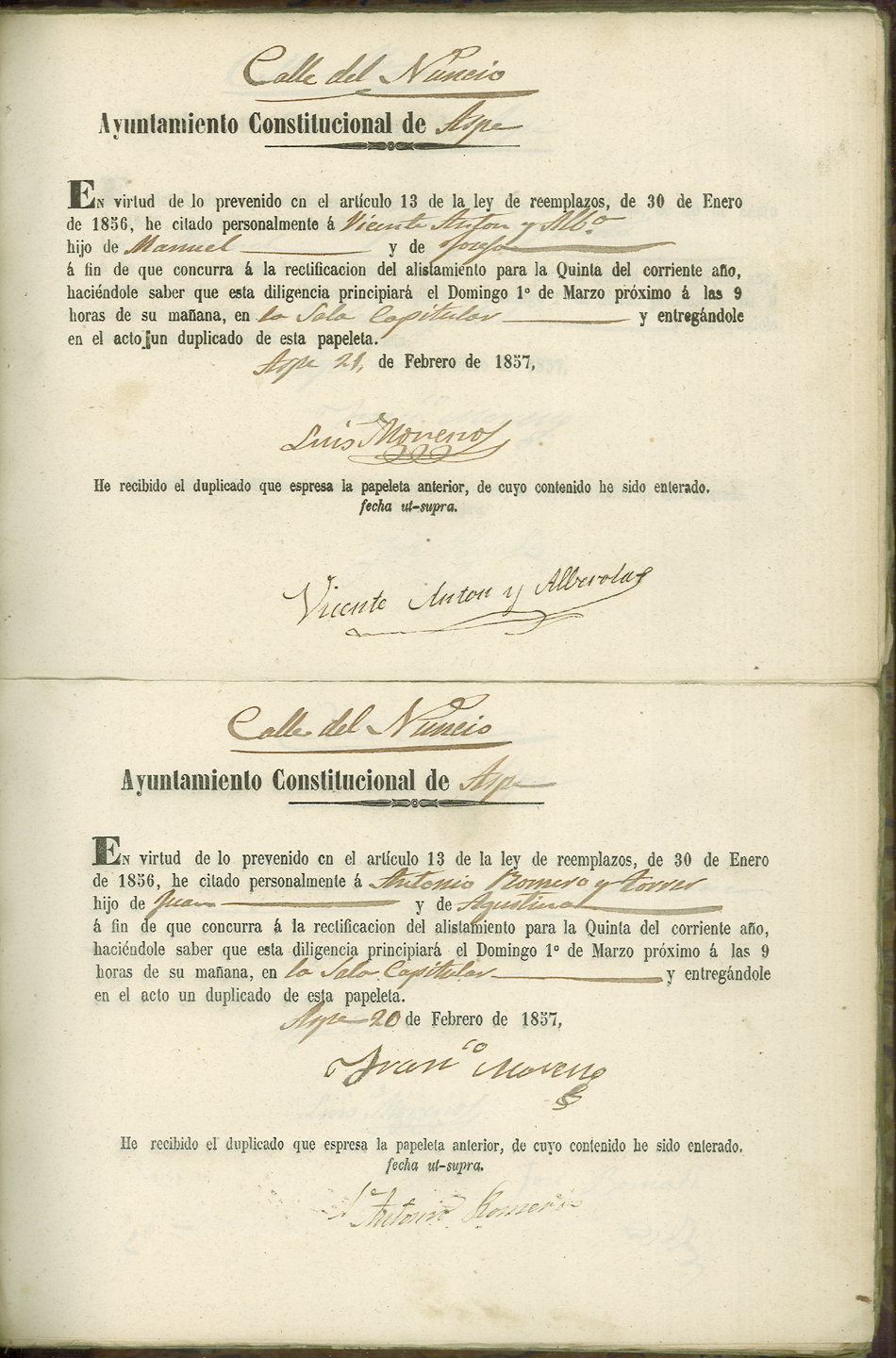 Actas de Alistamiento, 1857