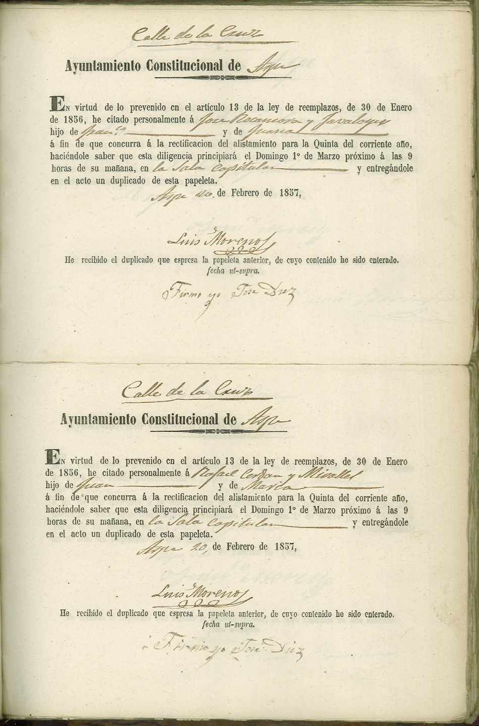 Actas de Alistamiento, 1857