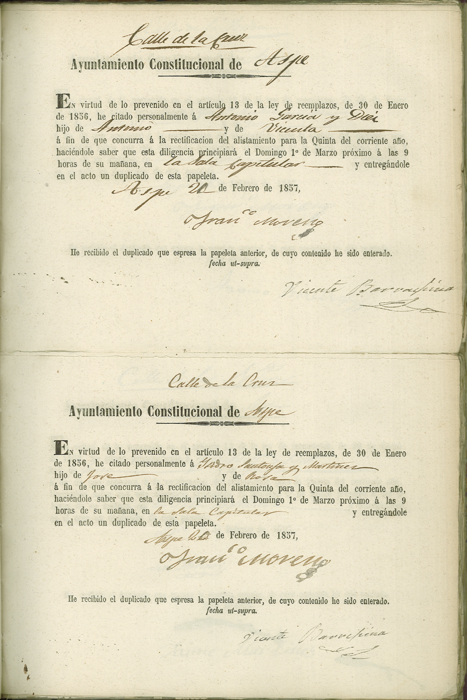 Actas de Alistamiento, 1857