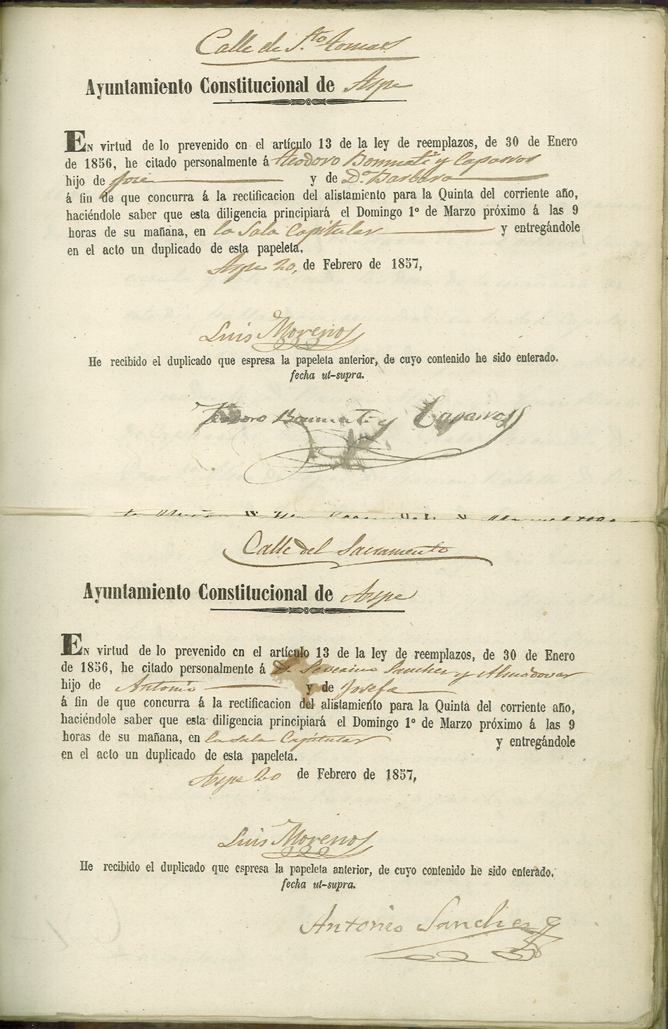 Actas de Alistamiento, 1857