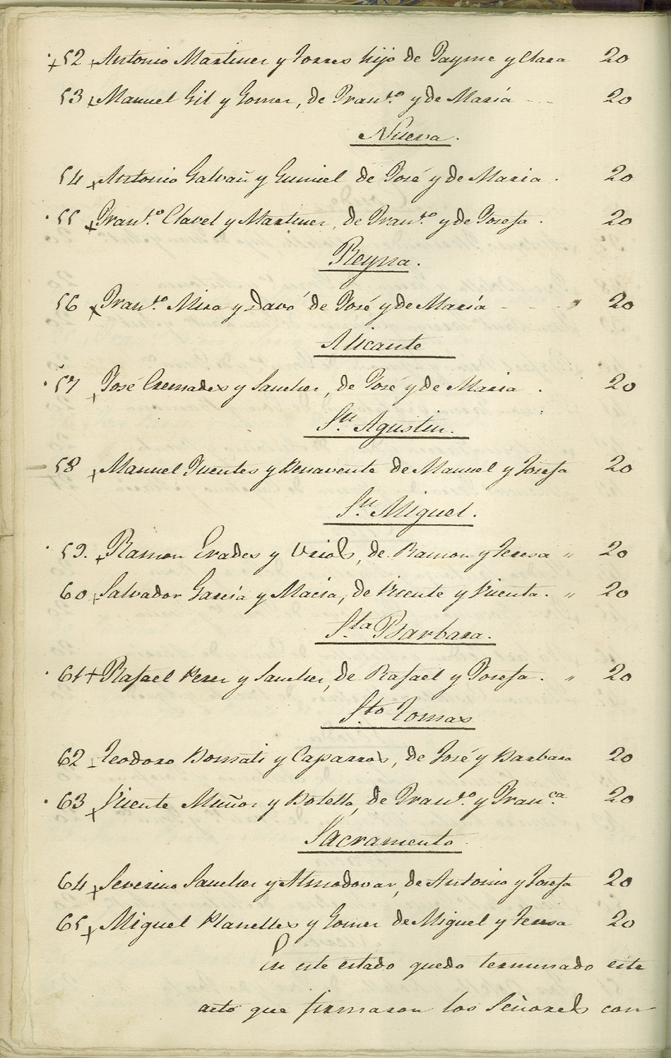 Actas de Alistamiento, 1857