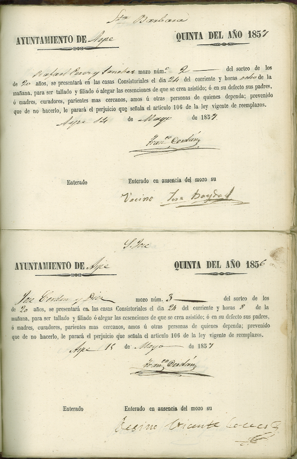 Actas de Alistamiento, 1857