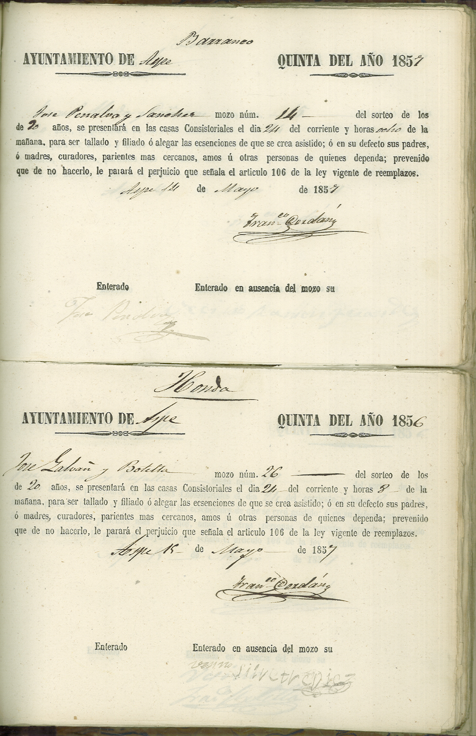 Actas de Alistamiento, 1857