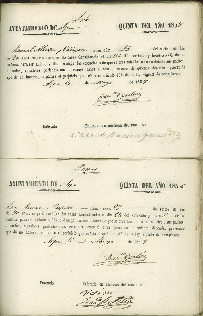 Actas de Alistamiento, 1857