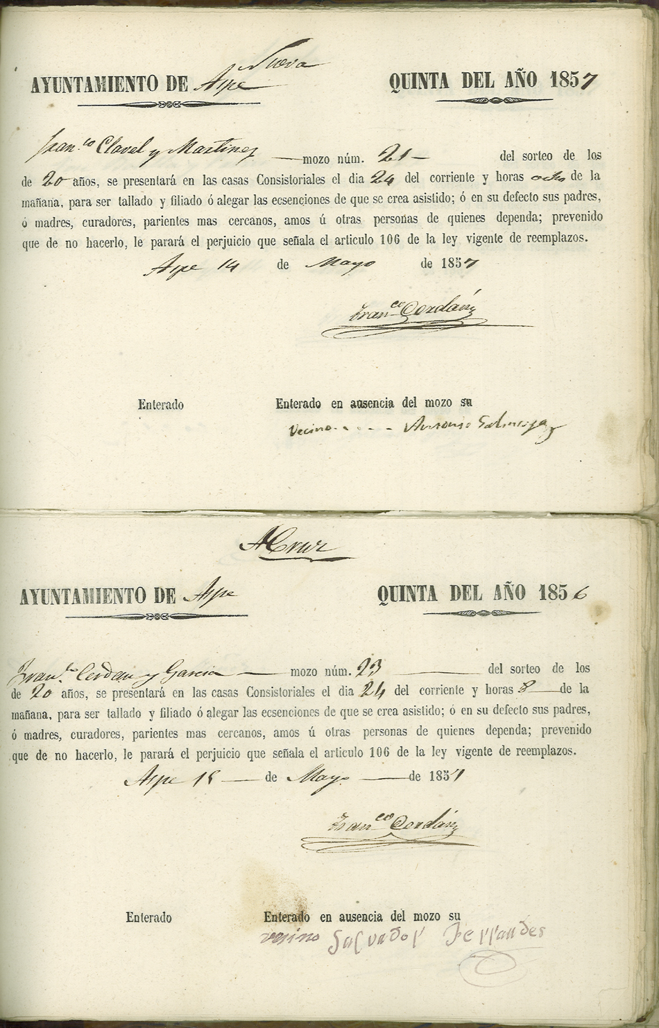 Actas de Alistamiento, 1857