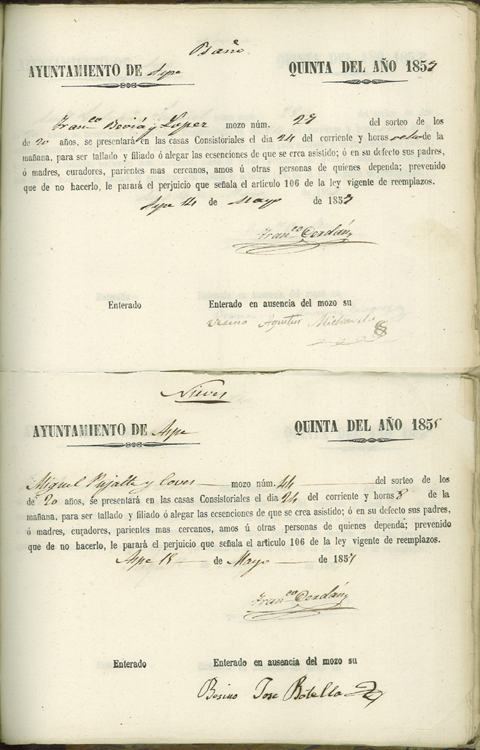 Actas de Alistamiento, 1857