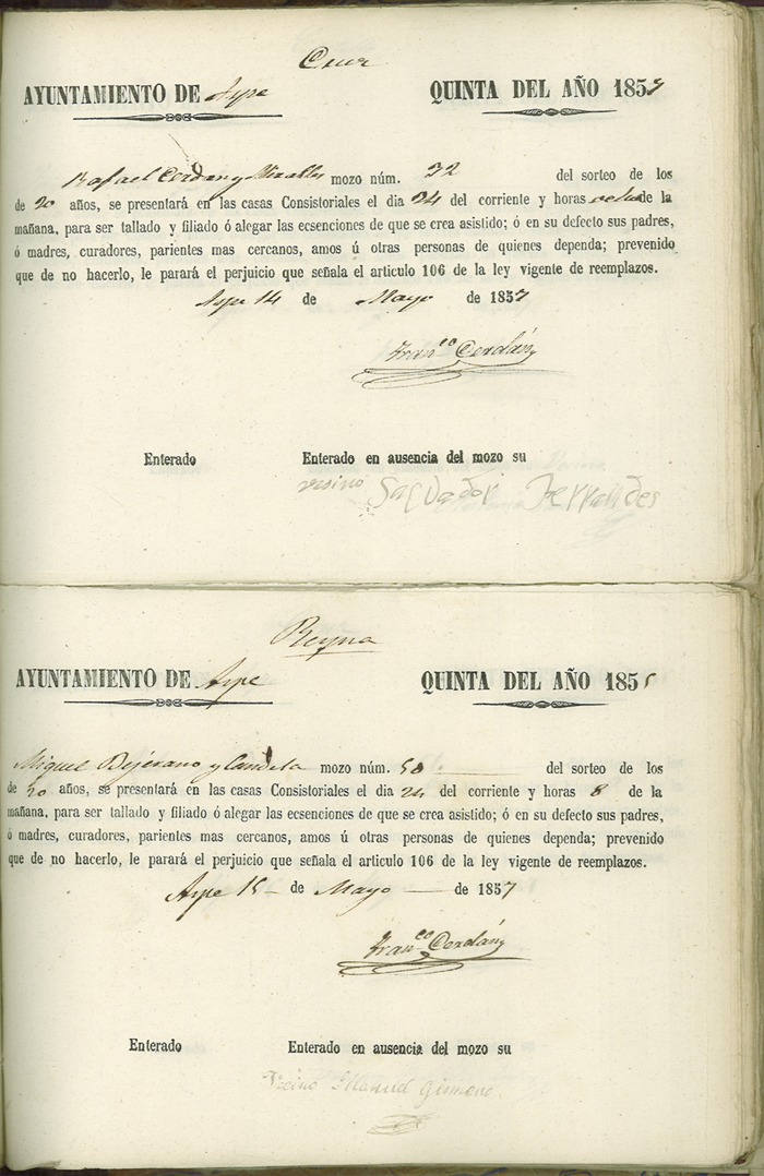 Actas de Alistamiento, 1857