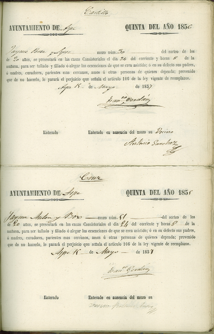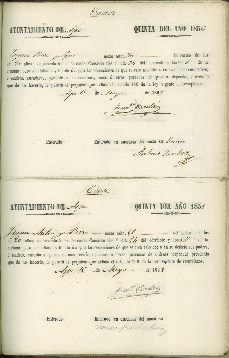 Actas de Alistamiento, 1857