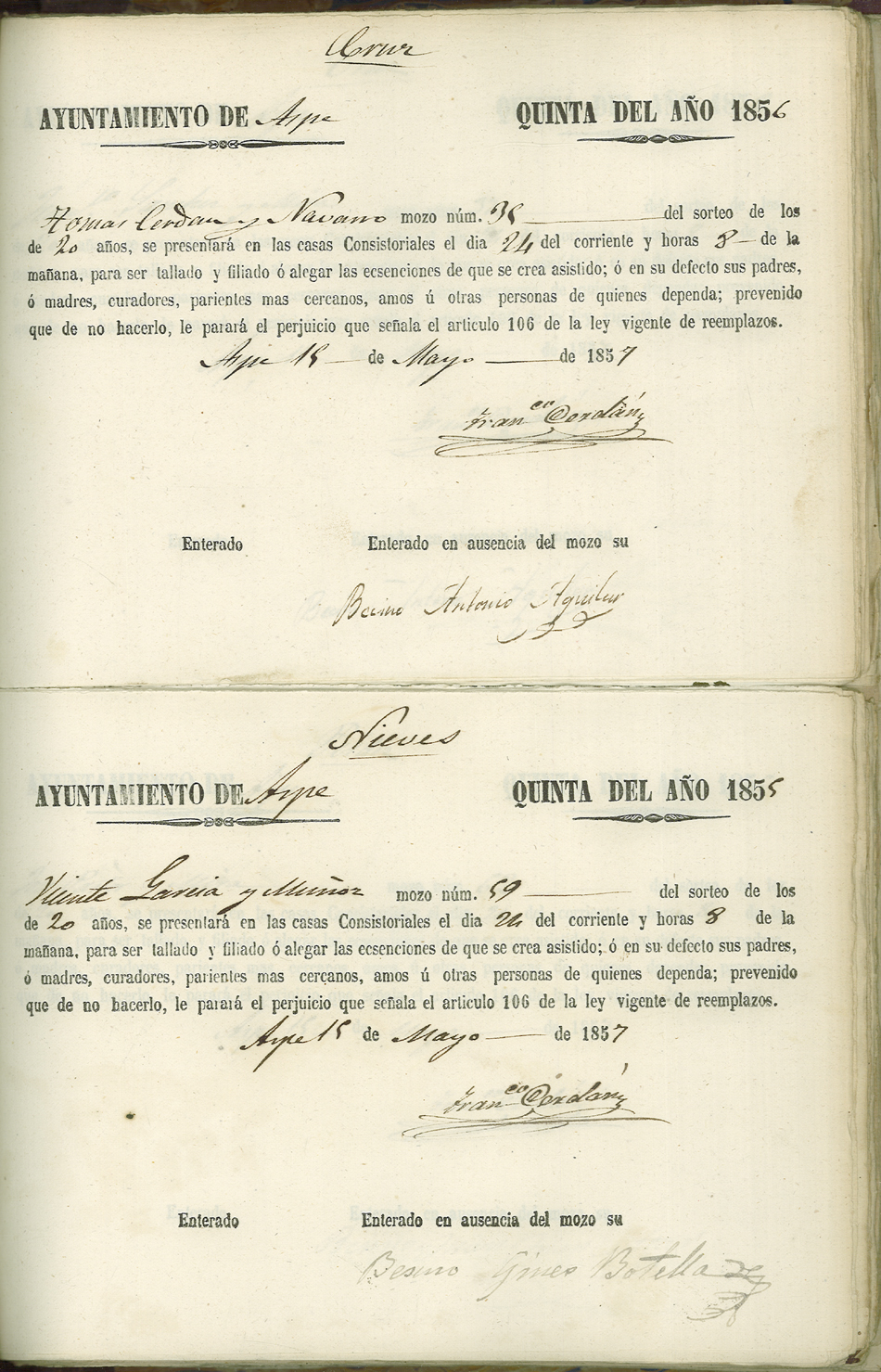 Actas de Alistamiento, 1857