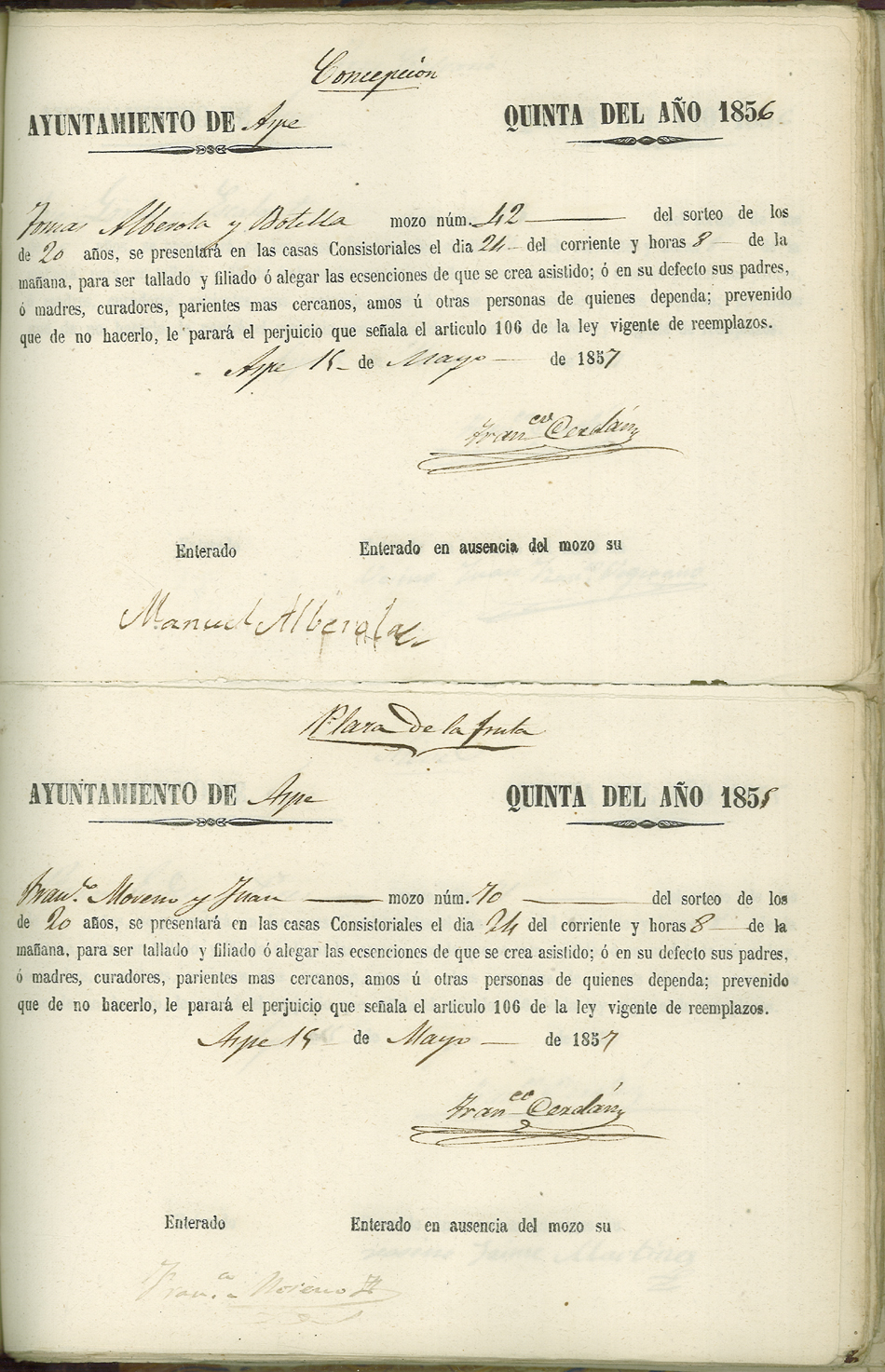 Actas de Alistamiento, 1857