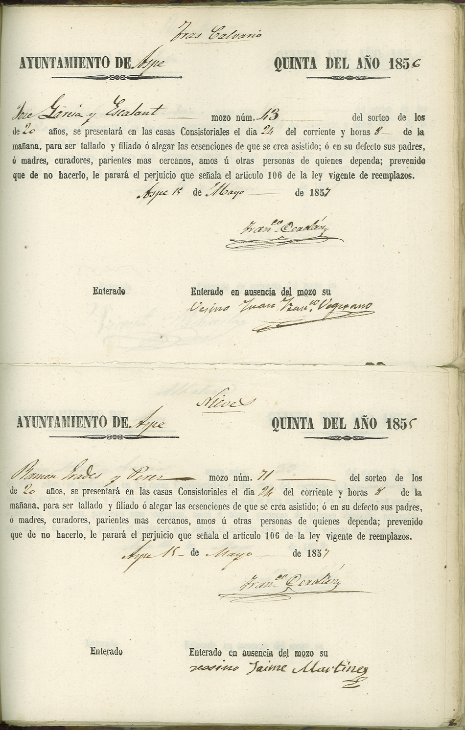 Actas de Alistamiento, 1857