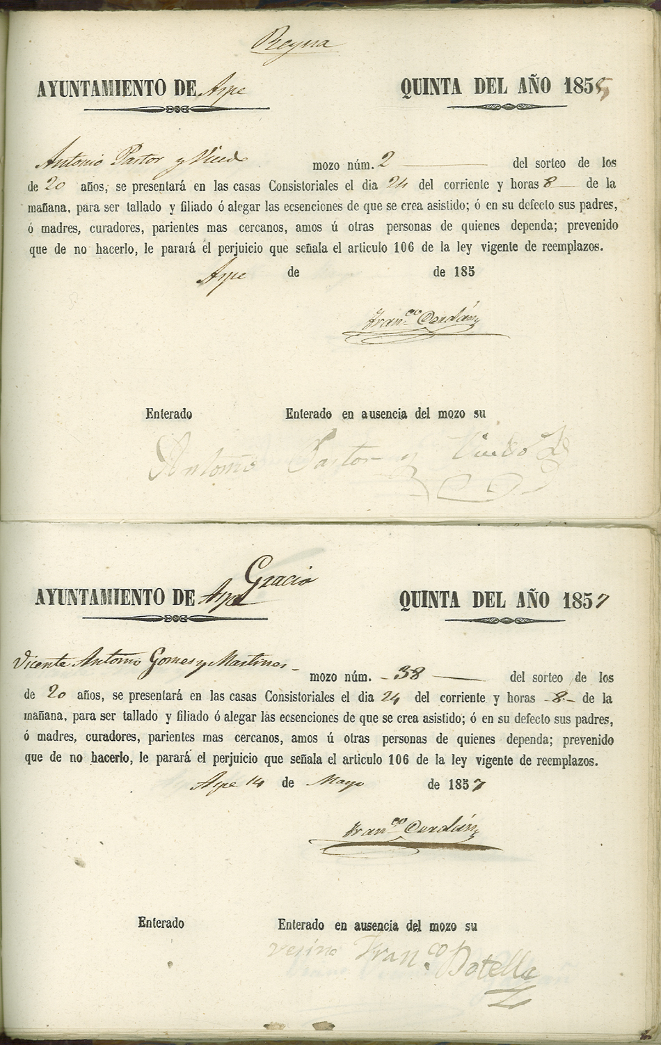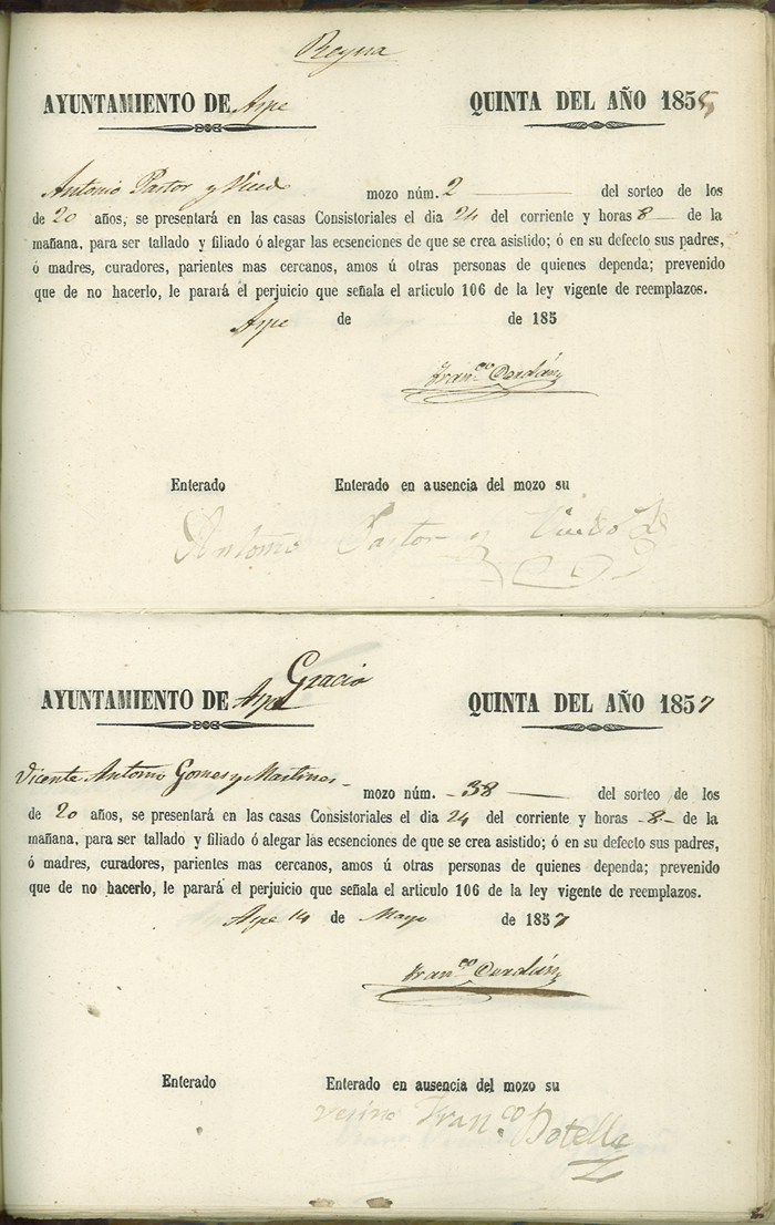 Actas de Alistamiento, 1857
