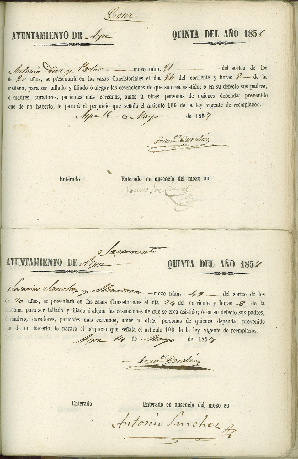 Actas de Alistamiento, 1857