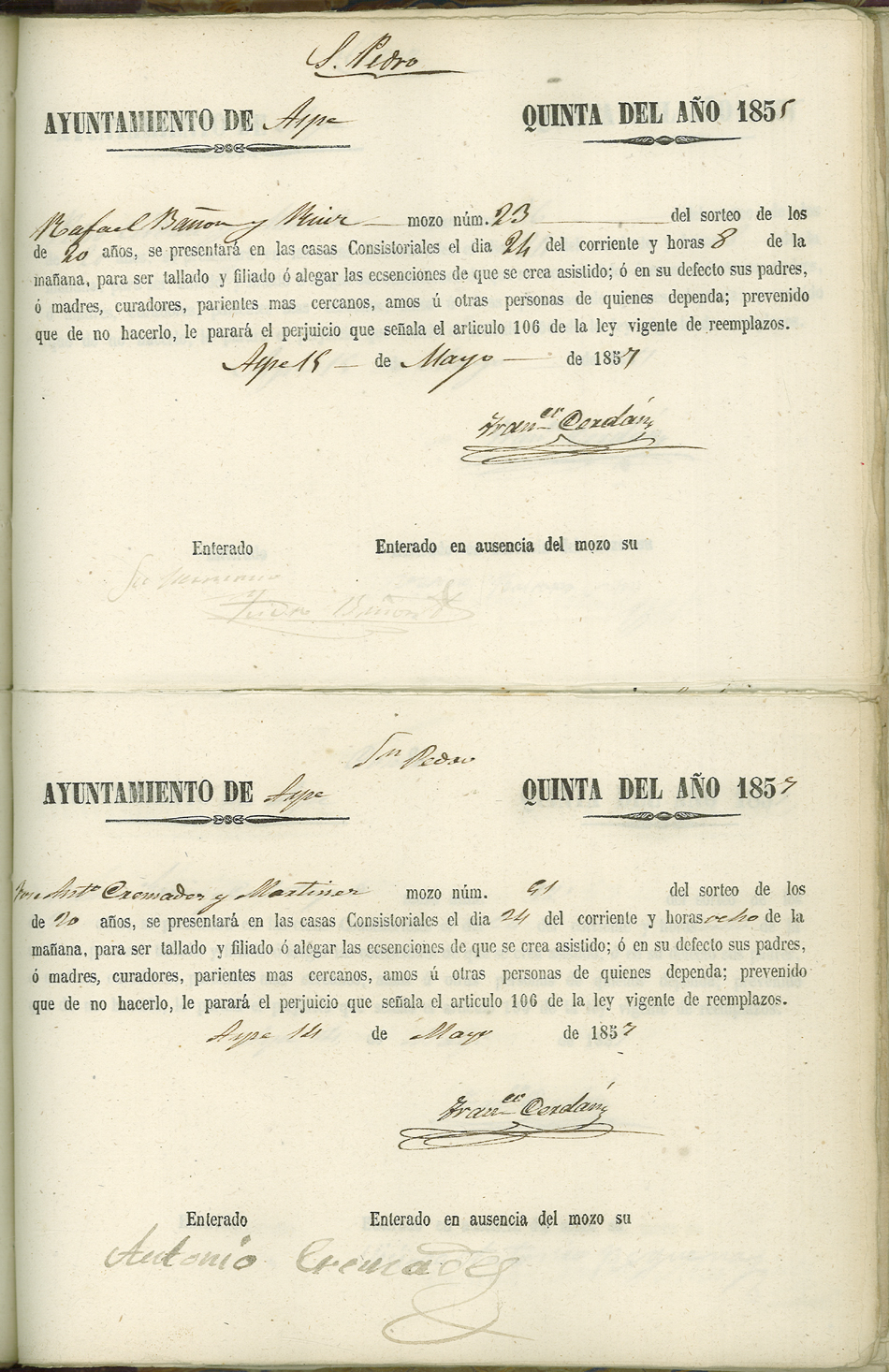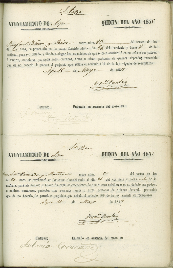 Actas de Alistamiento, 1857