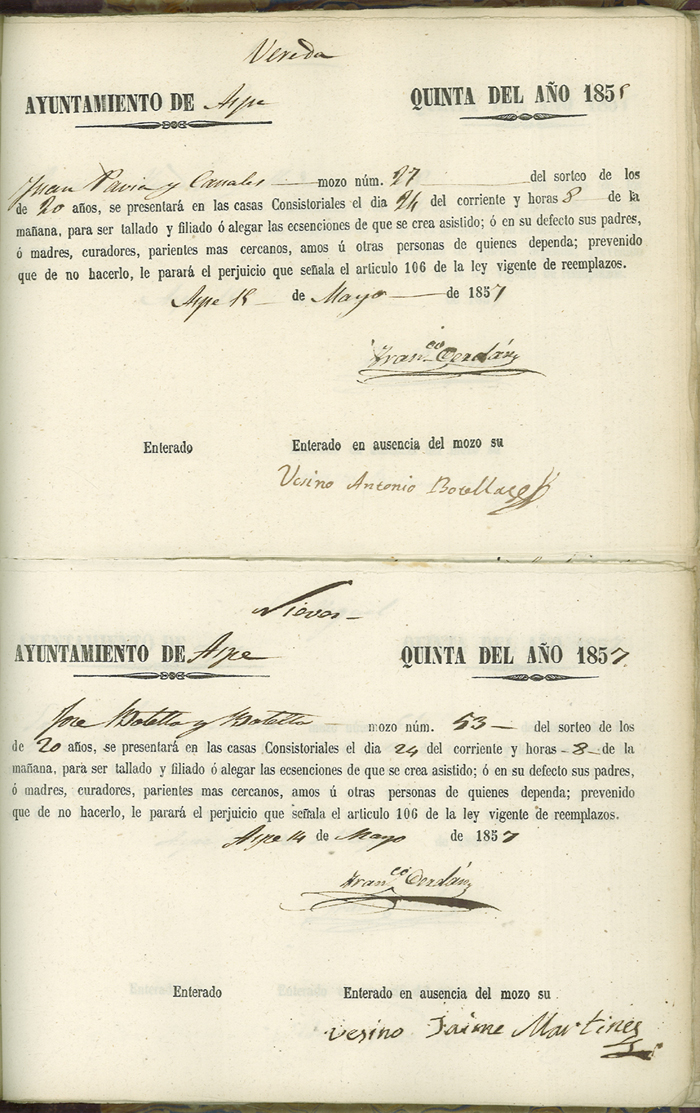 Actas de Alistamiento, 1857