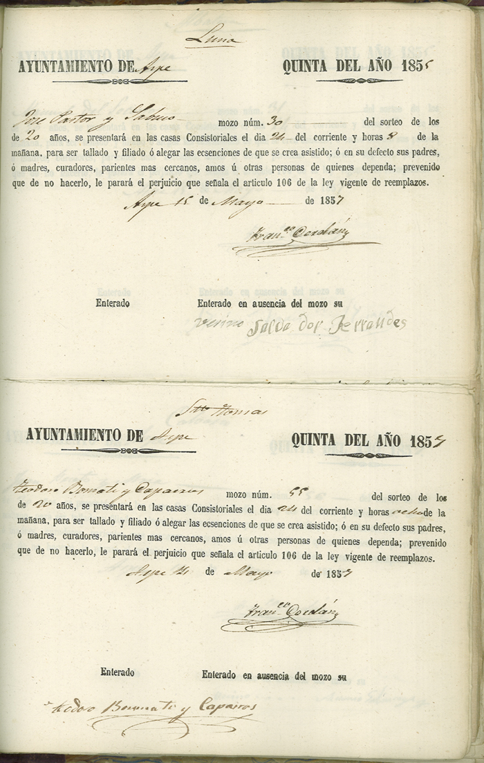 Actas de Alistamiento, 1857
