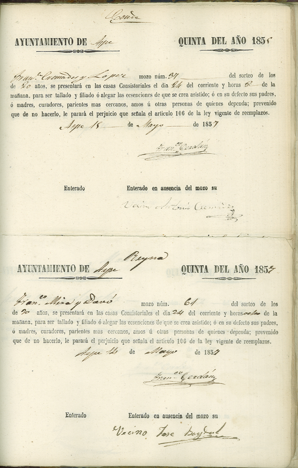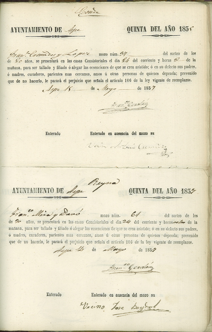 Actas de Alistamiento, 1857