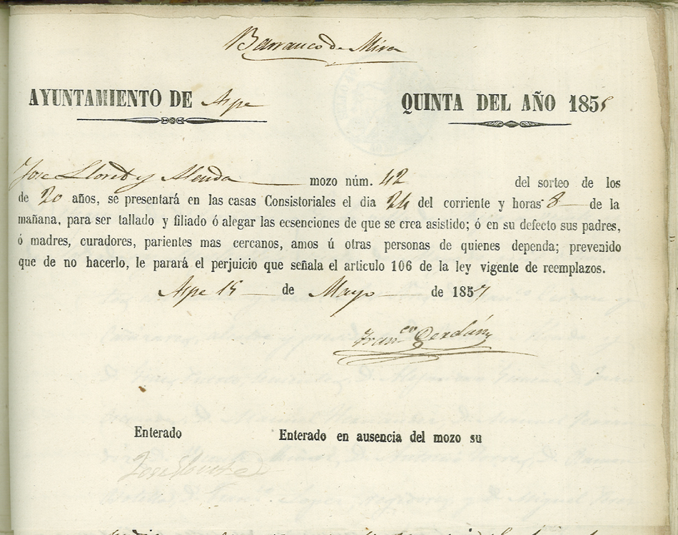 Actas de Alistamiento, 1857
