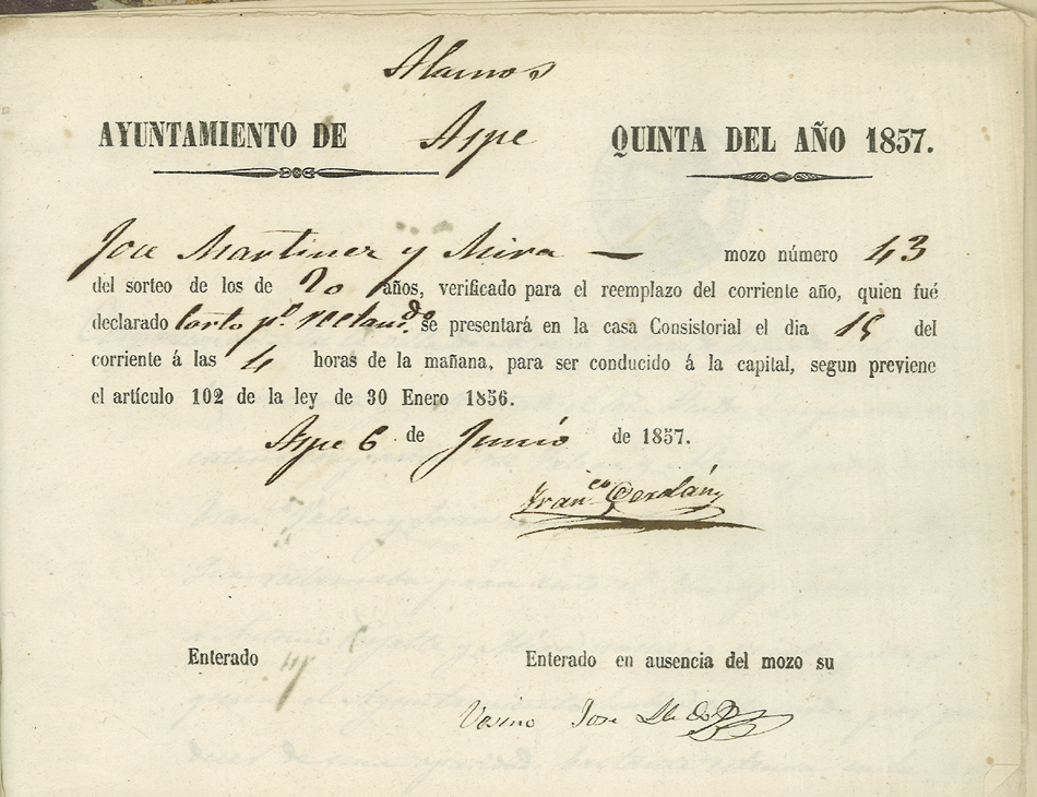 Actas de Alistamiento, 1857