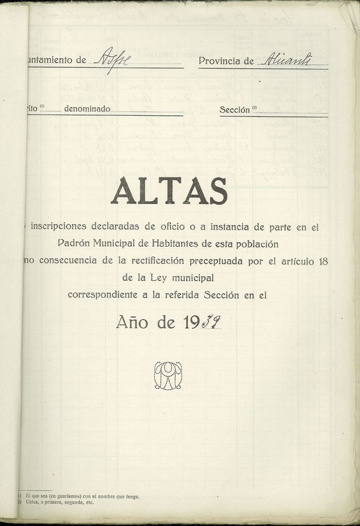 Rectificación del Padrón de habitantes, 1939