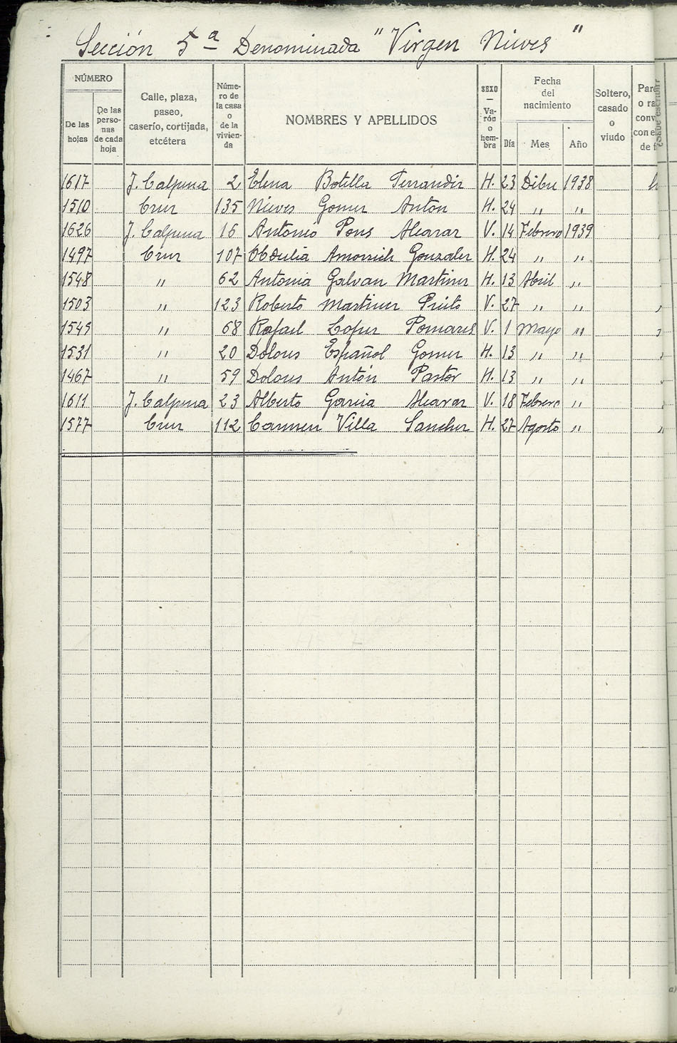 Rectificación del Padrón de habitantes, 1939