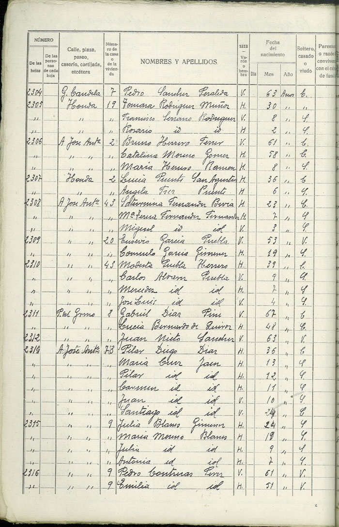 Rectificación del Padrón de habitantes, 1939