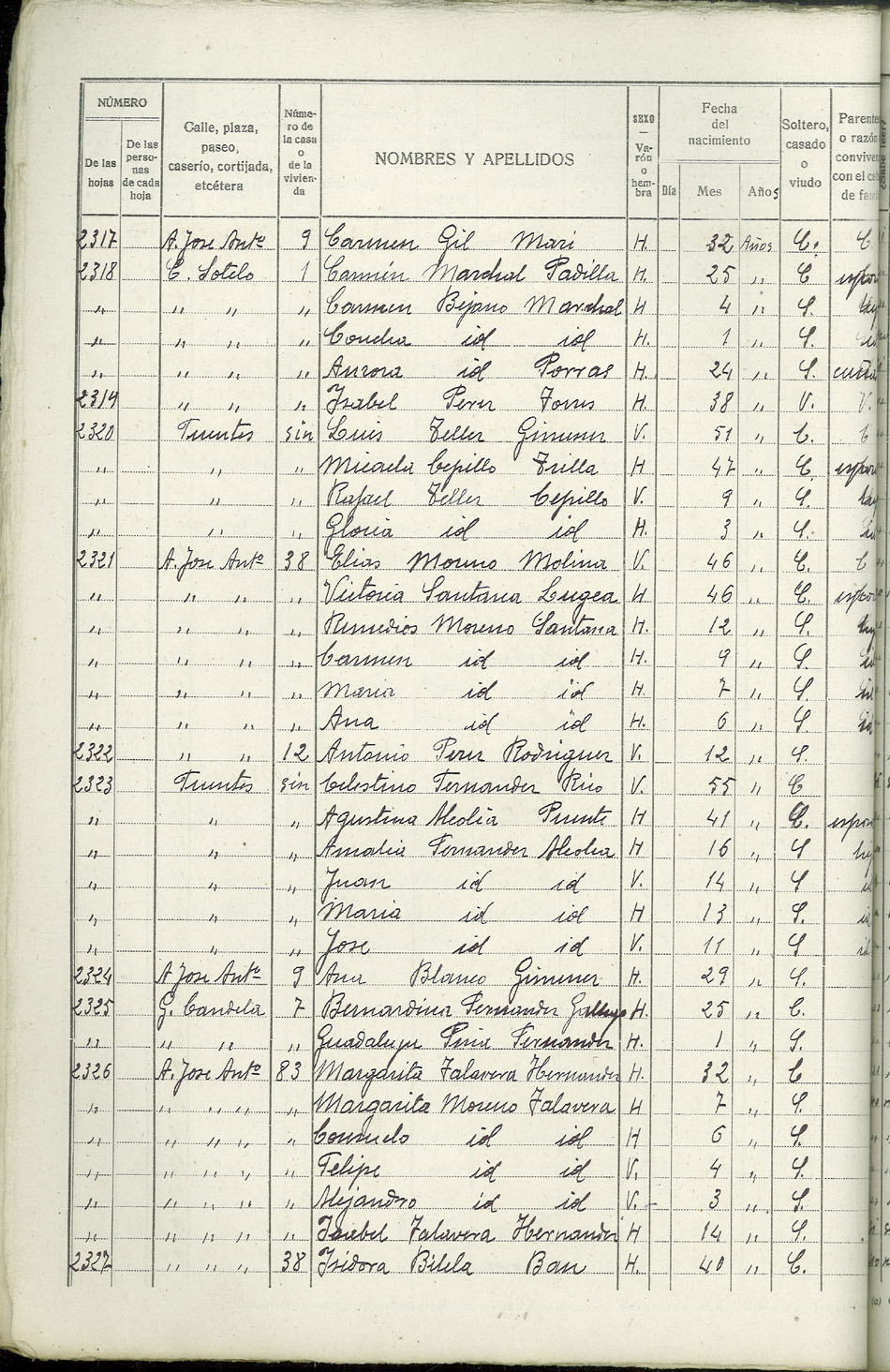 Rectificación del Padrón de habitantes, 1939