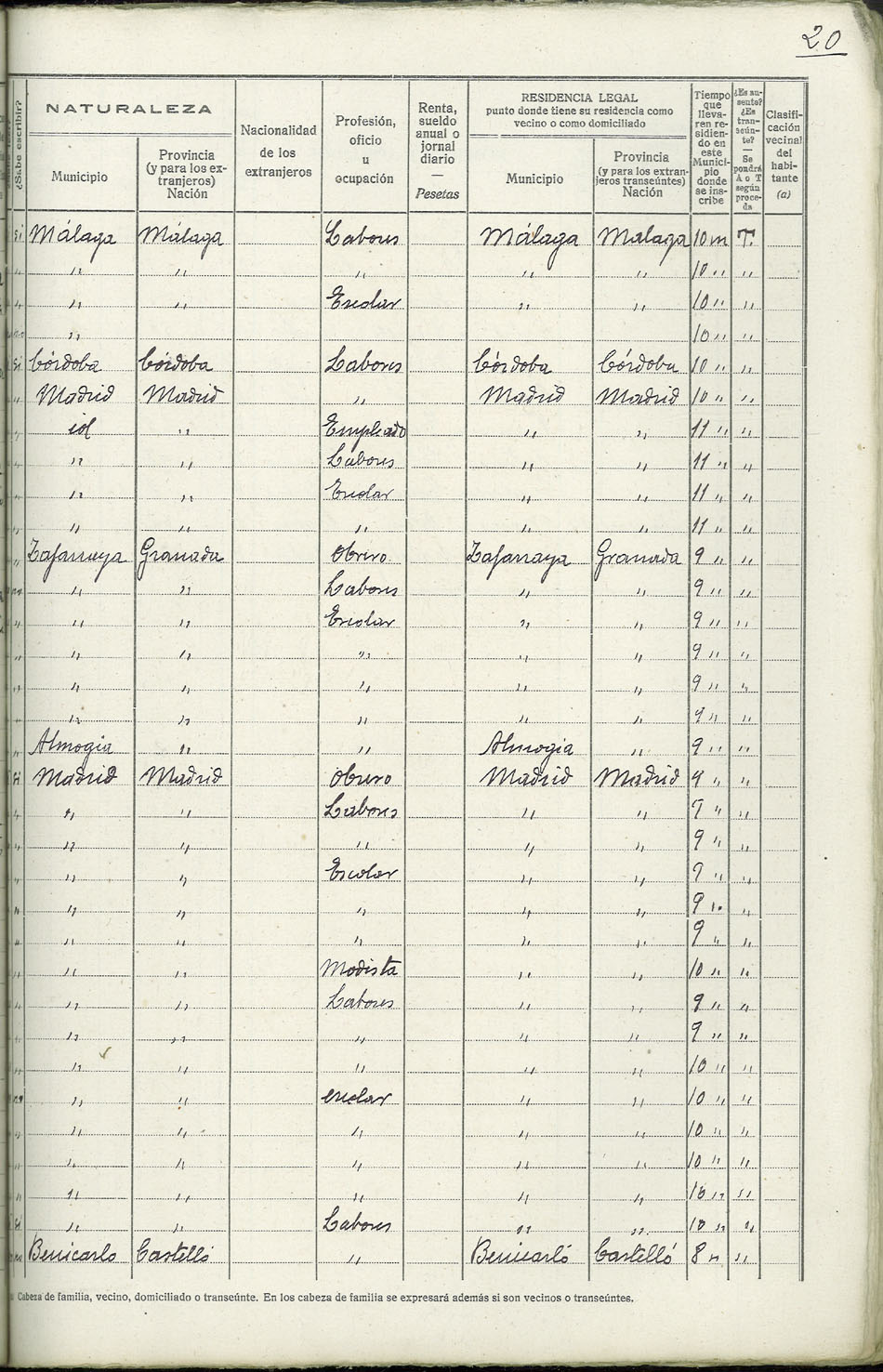 Rectificación del Padrón de habitantes, 1939