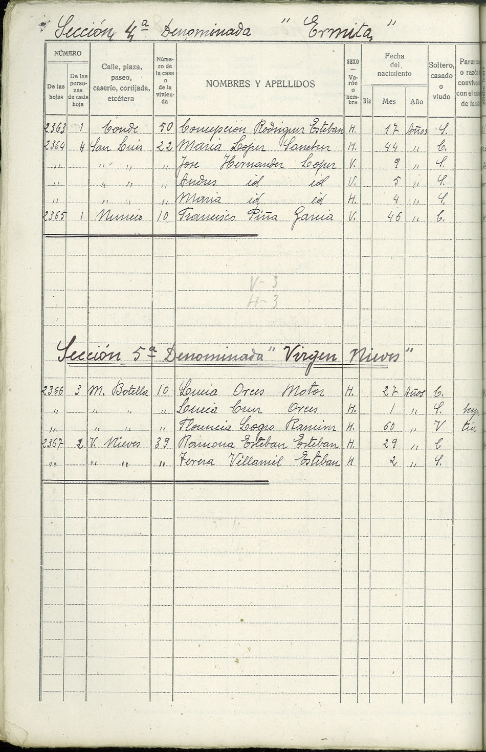Rectificación del Padrón de habitantes, 1939