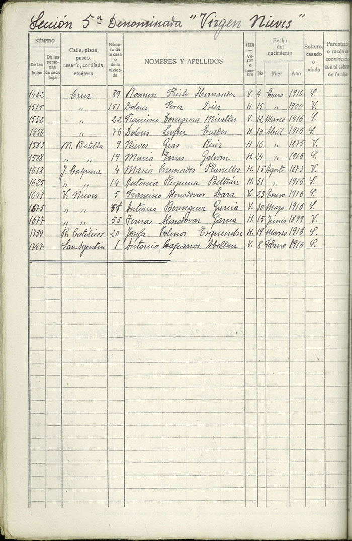 Rectificación del Padrón de habitantes, 1939
