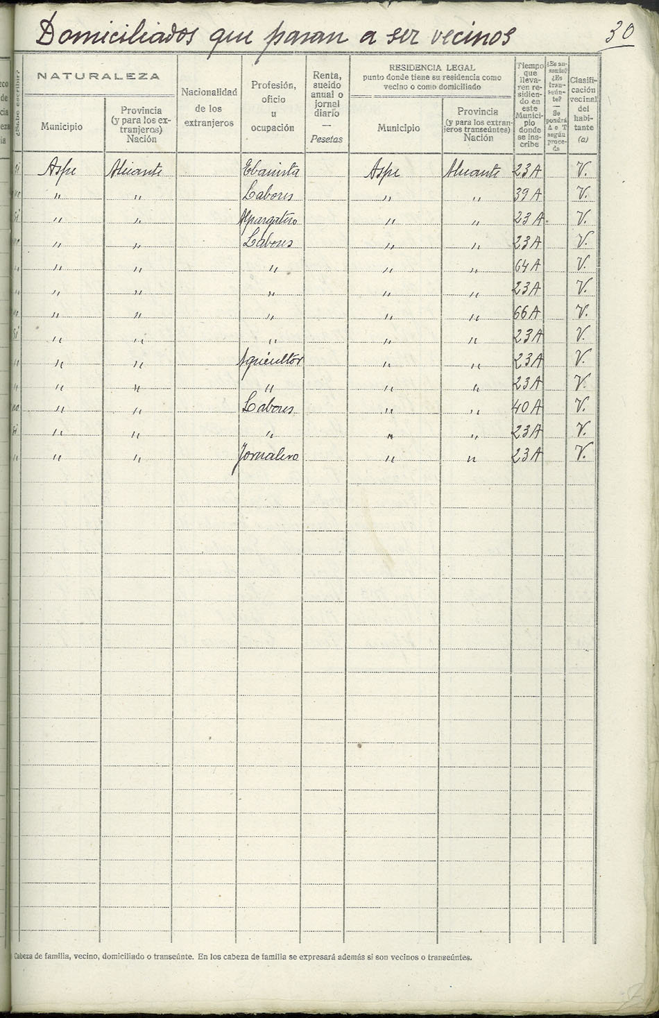 Rectificación del Padrón de habitantes, 1939