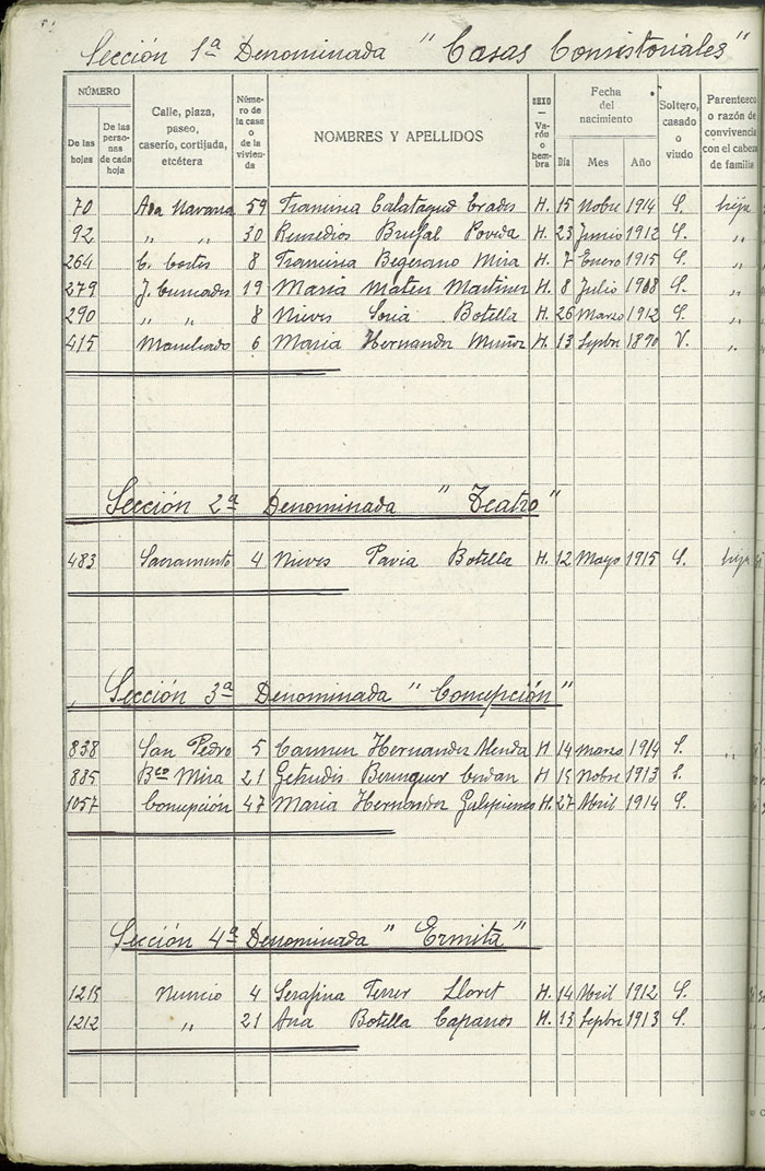 Rectificación del Padrón de habitantes, 1939