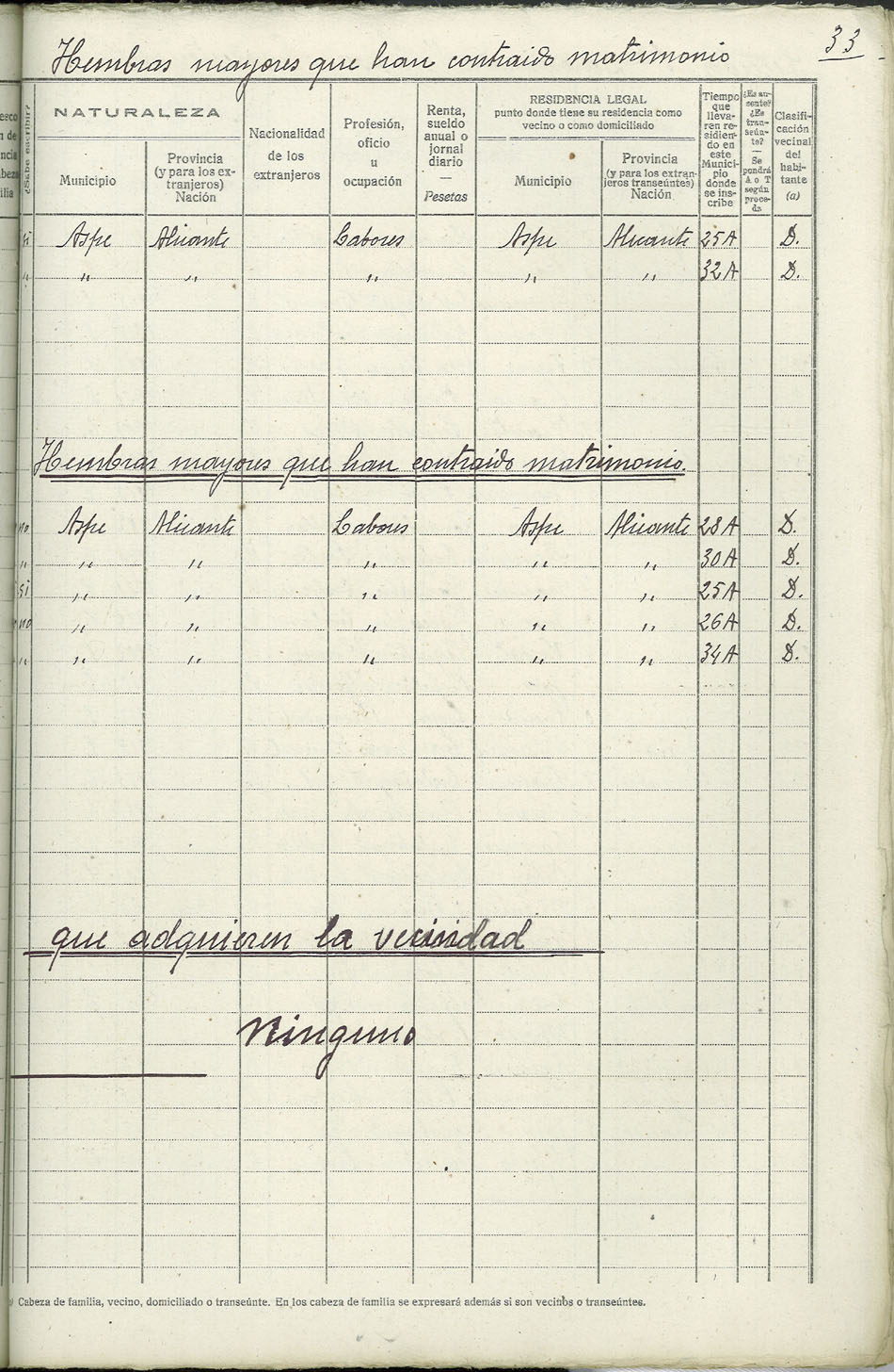 Rectificación del Padrón de habitantes, 1939