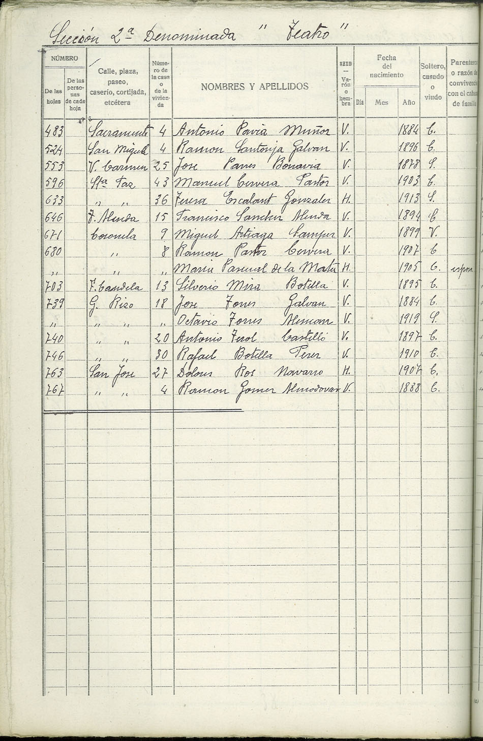 Rectificación del Padrón de habitantes, 1939