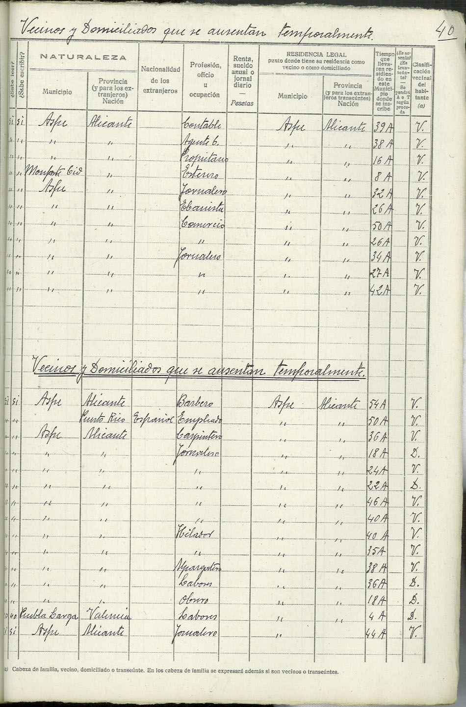 Rectificación del Padrón de habitantes, 1939