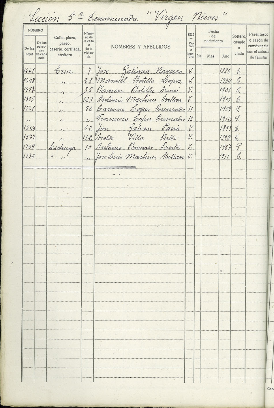 Rectificación del Padrón de habitantes, 1939