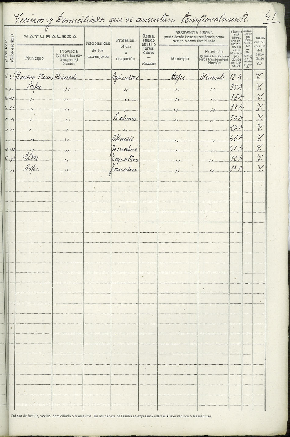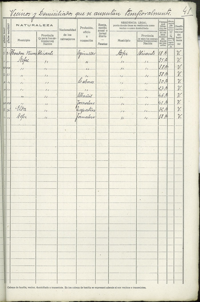 Rectificación del Padrón de habitantes, 1939