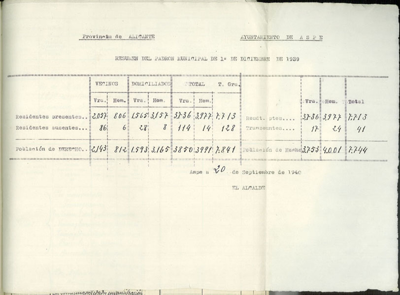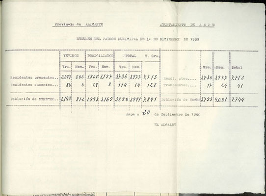 Rectificación del Padrón de habitantes, 1939