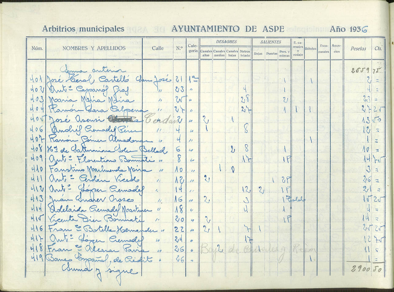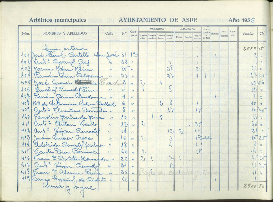 Padrón de personas sujetas al pago de arbitrios municipales, 1936