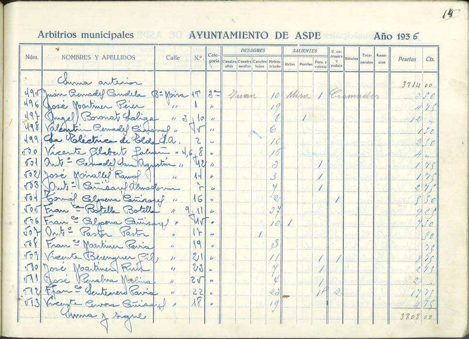 Padrón de personas sujetas al pago de arbitrios municipales, 1936