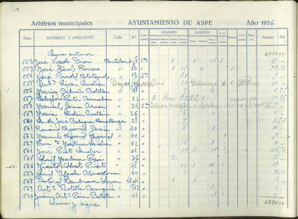 Padrón de personas sujetas al pago de arbitrios municipales, 1936