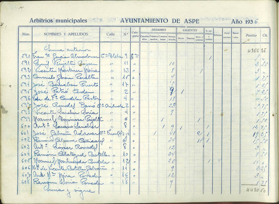 Padrón de personas sujetas al pago de arbitrios municipales, 1936