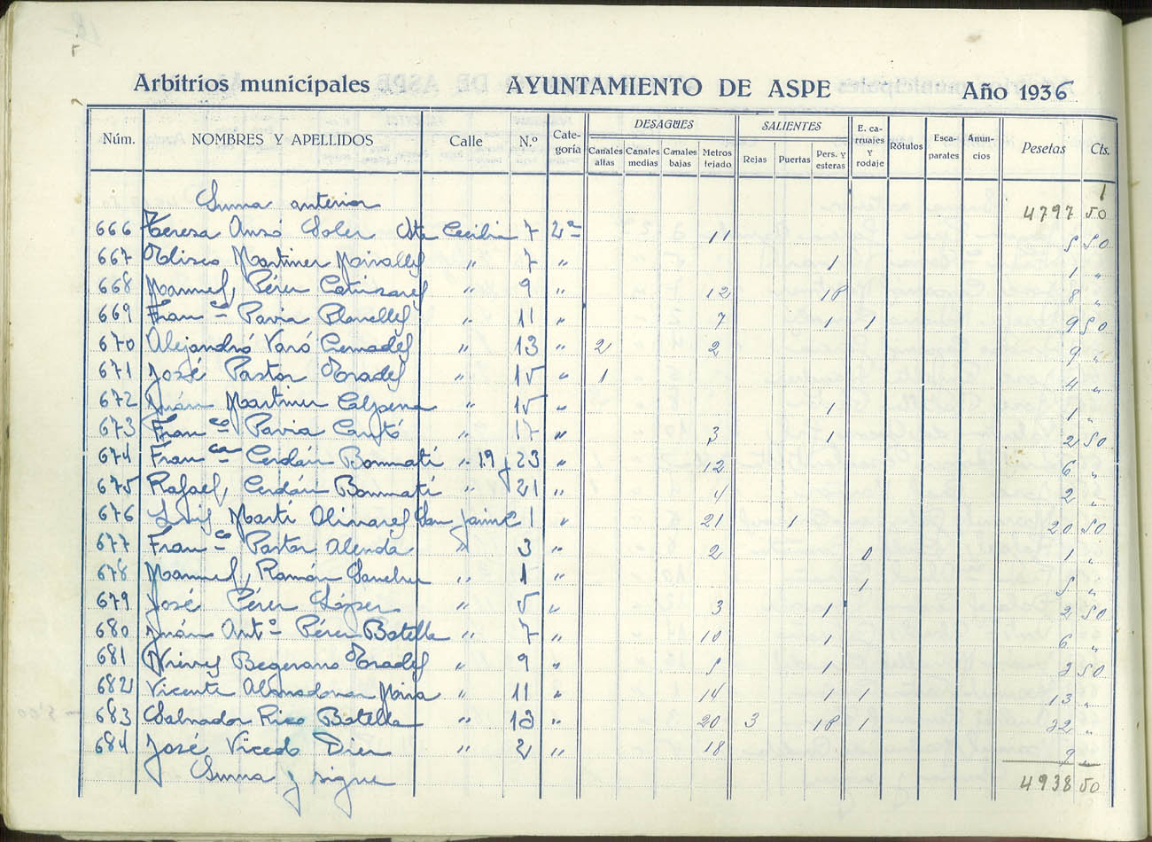 Padrón de personas sujetas al pago de arbitrios municipales, 1936